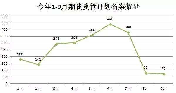 截止9月29日,期货资产管理计划本月的备案数量仅为72只,与8月份的79只基本持平。而此前1月到7月该类产品备案十分火爆,合计备案数量超过2000只,最火热的是今年6月和7月,备案数量分别为440只、380只。原来不少期货产品的杠杆非常高,但八条底线等新规实行以后,要求大幅降低产品杠杆,控制风险,由此大量结构化、杠杆产品均受到影响。