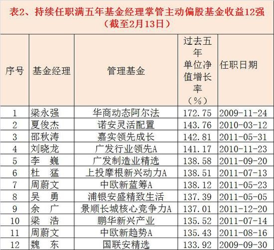 二、主动偏股基金五年期12强基金经理