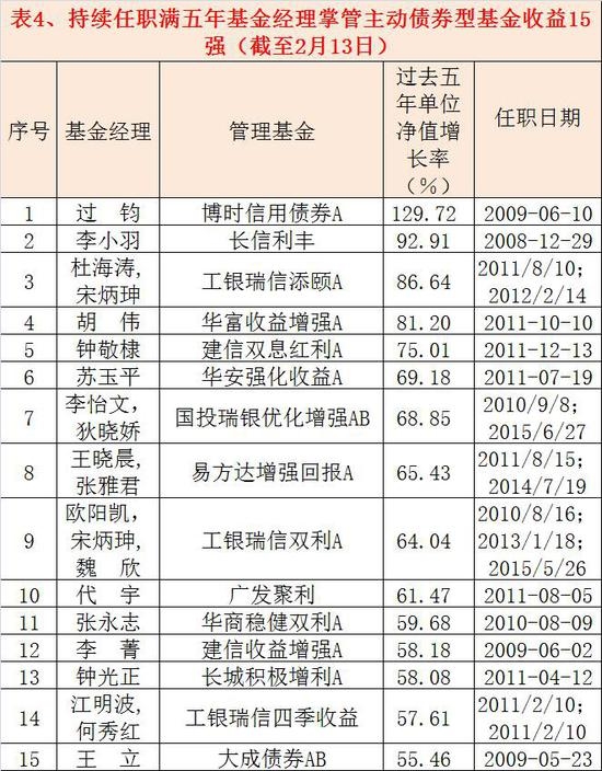 四、主动债券型基金五年期15强基金经理