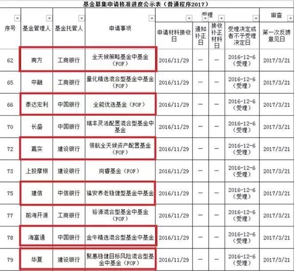 2017年3月中下旬——基金公司此前上报的FOF产品获证监会首次反馈。