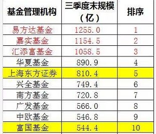 富国基金三季度末规模为544.4亿元,排名第十。