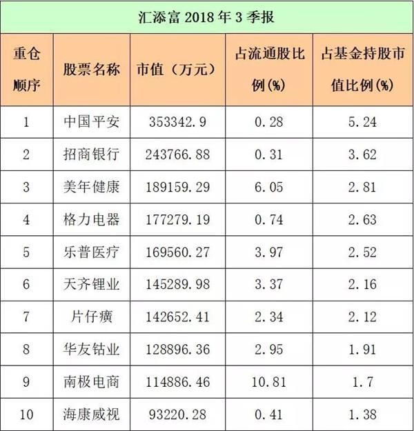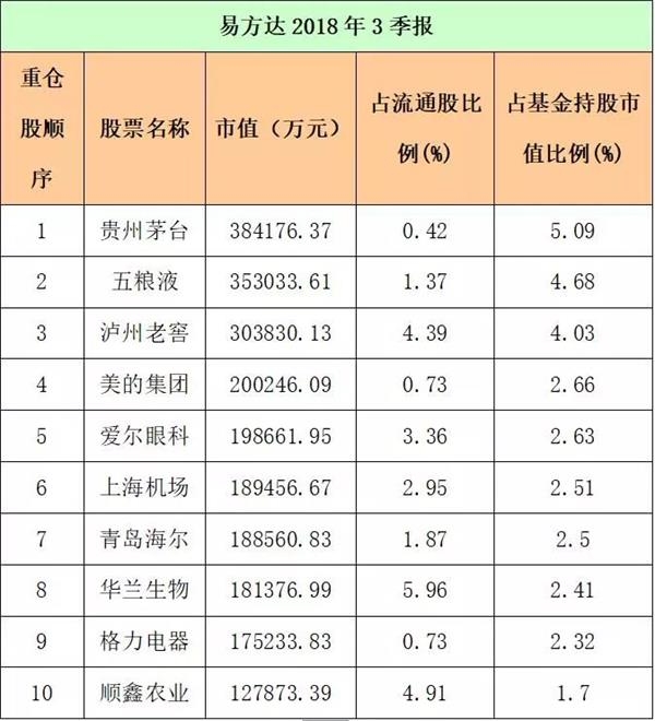 易方达三季度的重仓股情况是这样的: