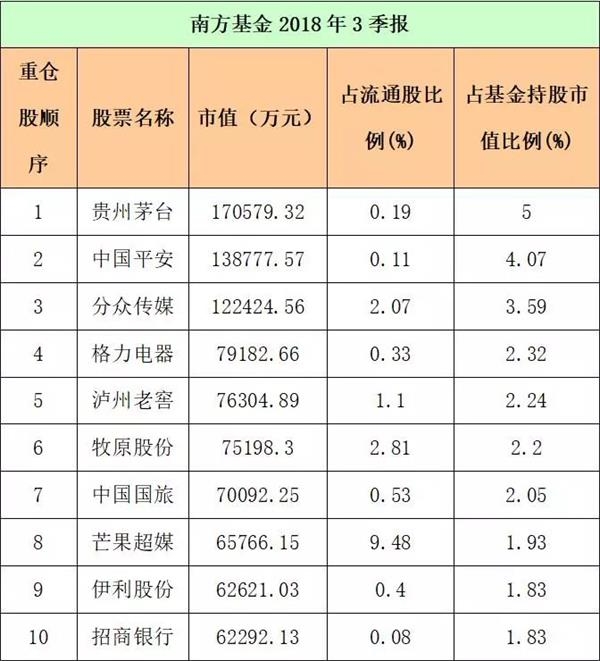十大基金公司重仓股来了 最爱这些股(名单)