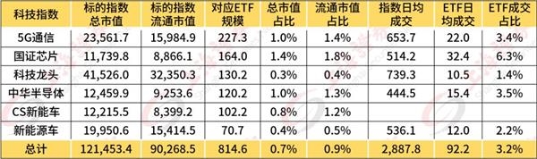 规模仅占对应指数成分股科技板块相应ETF对应标的指数市值对比分析